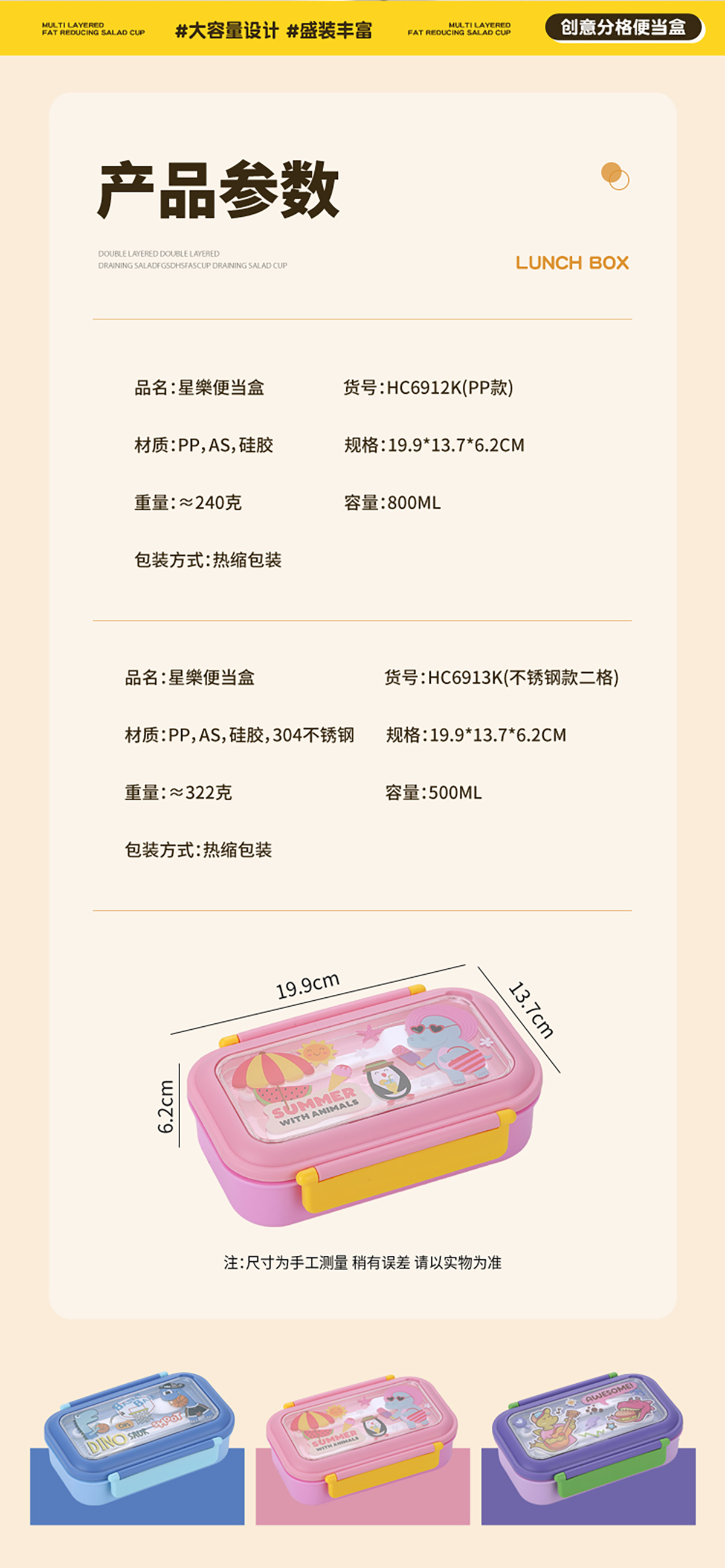 星樂(lè)卡通便當(dāng)盒PP款800ml/不銹鋼款500ml