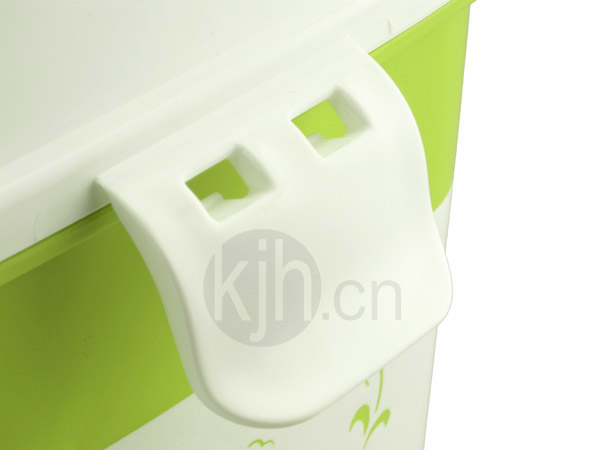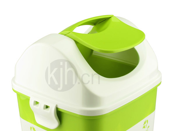 • 桶蓋采用手柄設計,輕碰桶蓋便會轉(zhuǎn)中,垃圾扔進去就OK,蓋子自動復原。