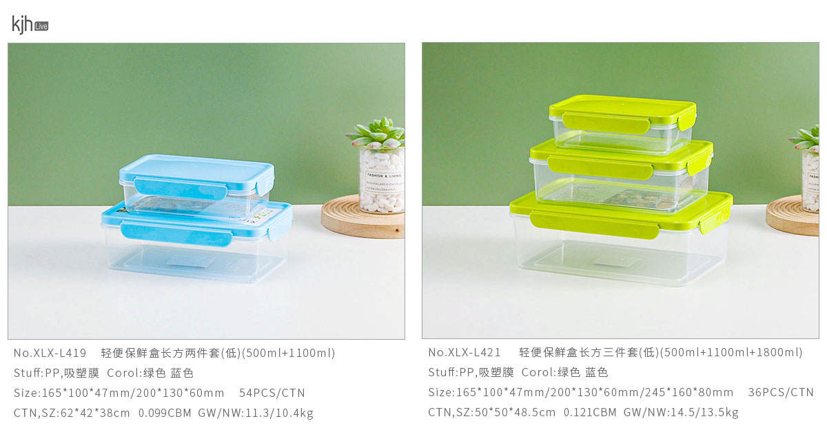 XLX-L419:165*100*47mm/200*130*60mm(500ml+1100ml)