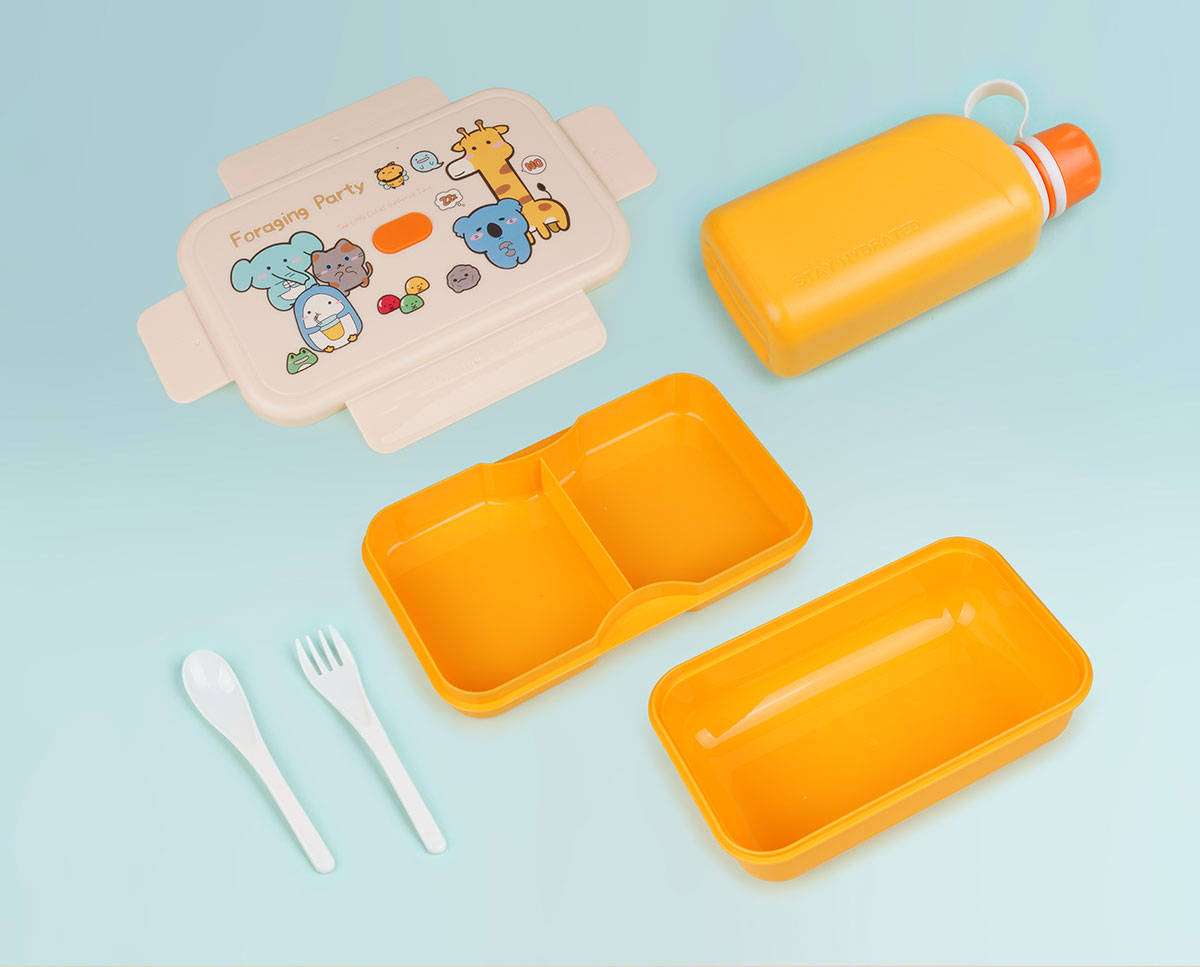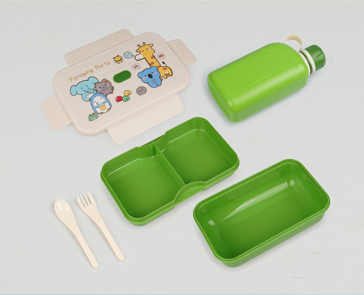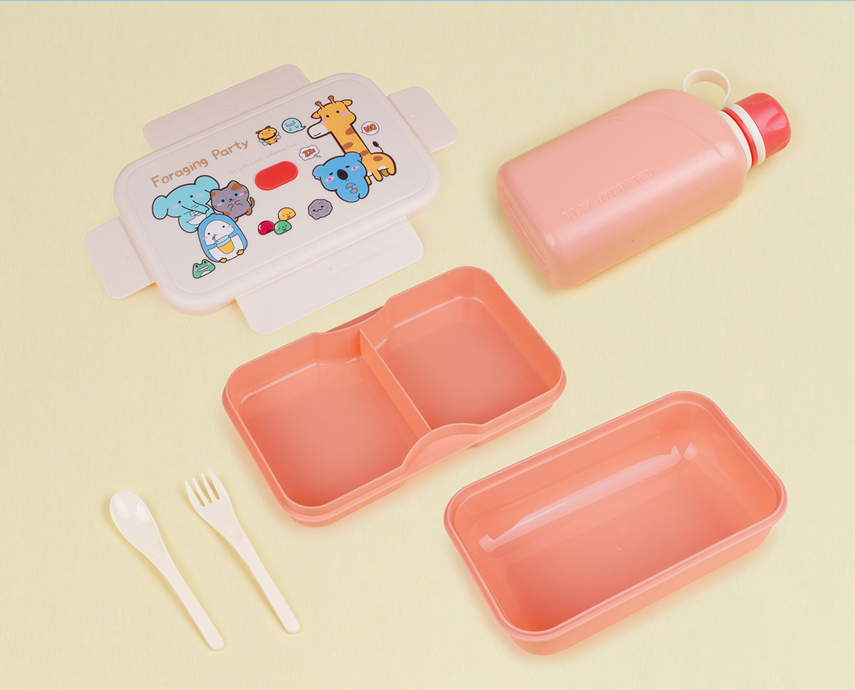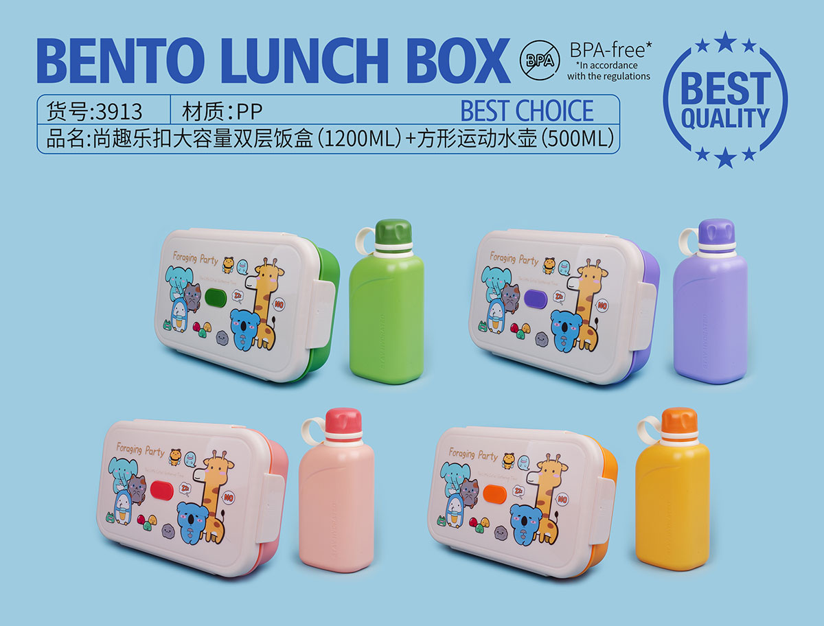 尚趣樂扣大容量雙層飯盒(1200ml)+方形運動水壺(500ml)