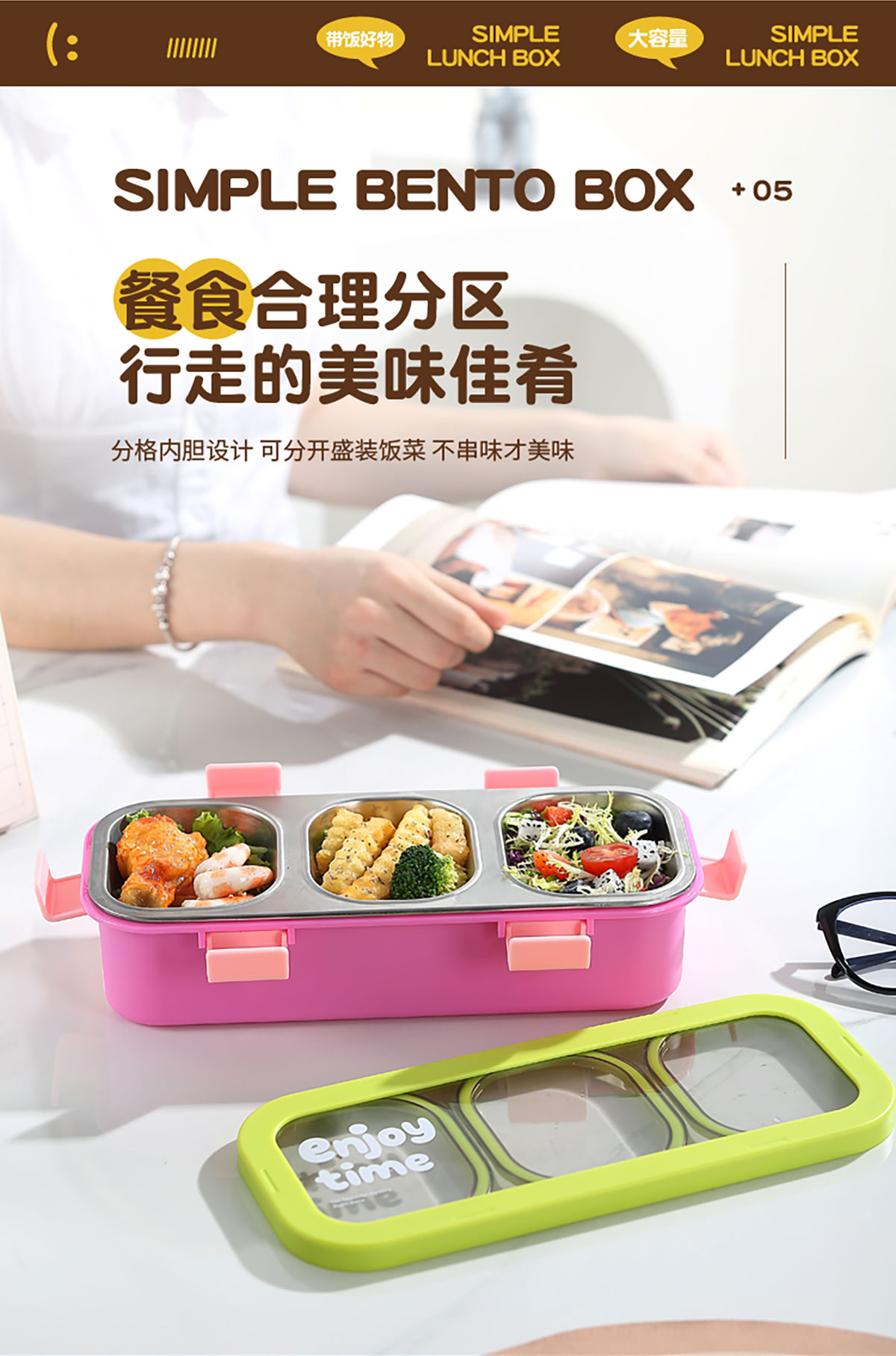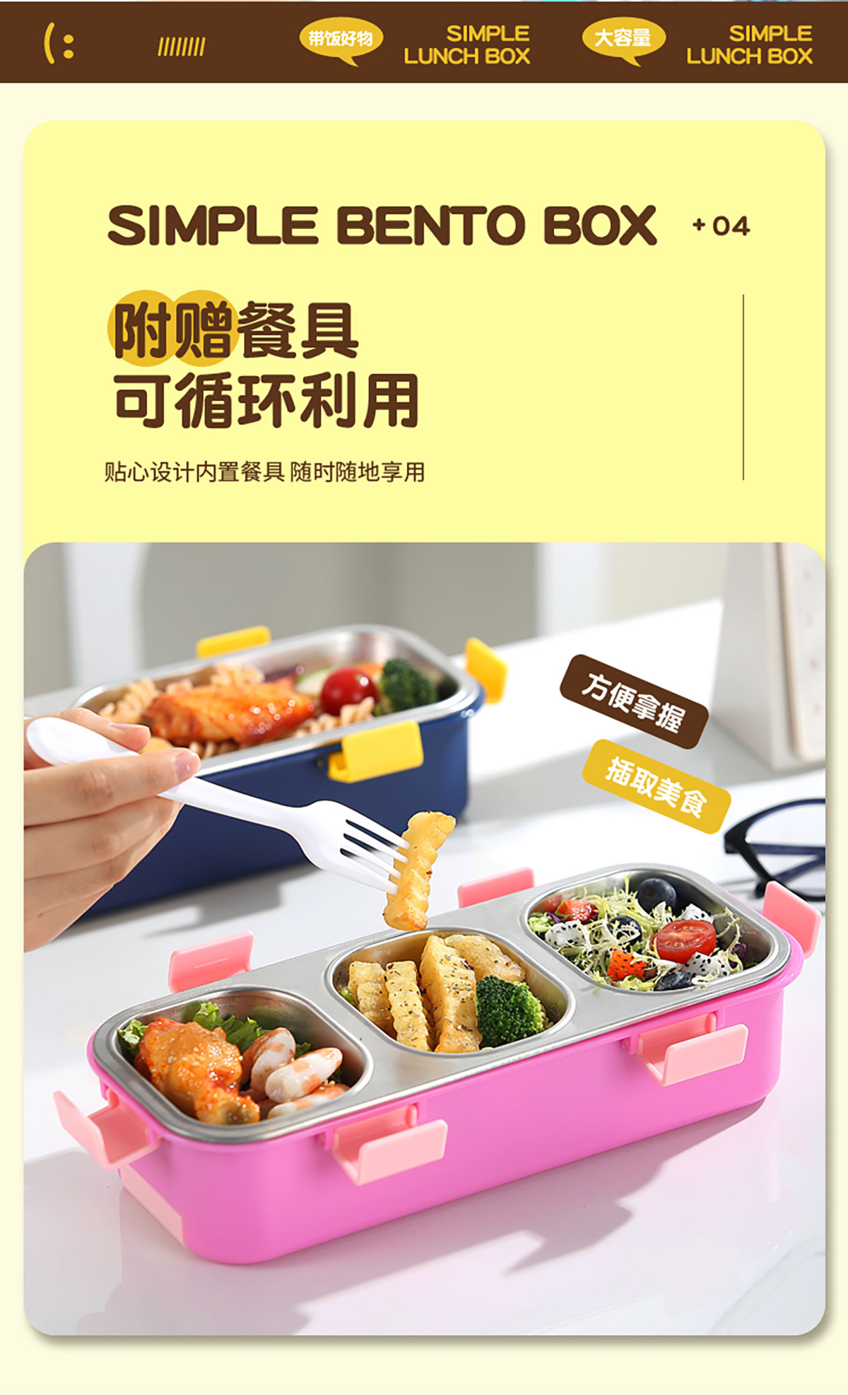 Size: 275*119*73mm(二格600ml/三格500ml)