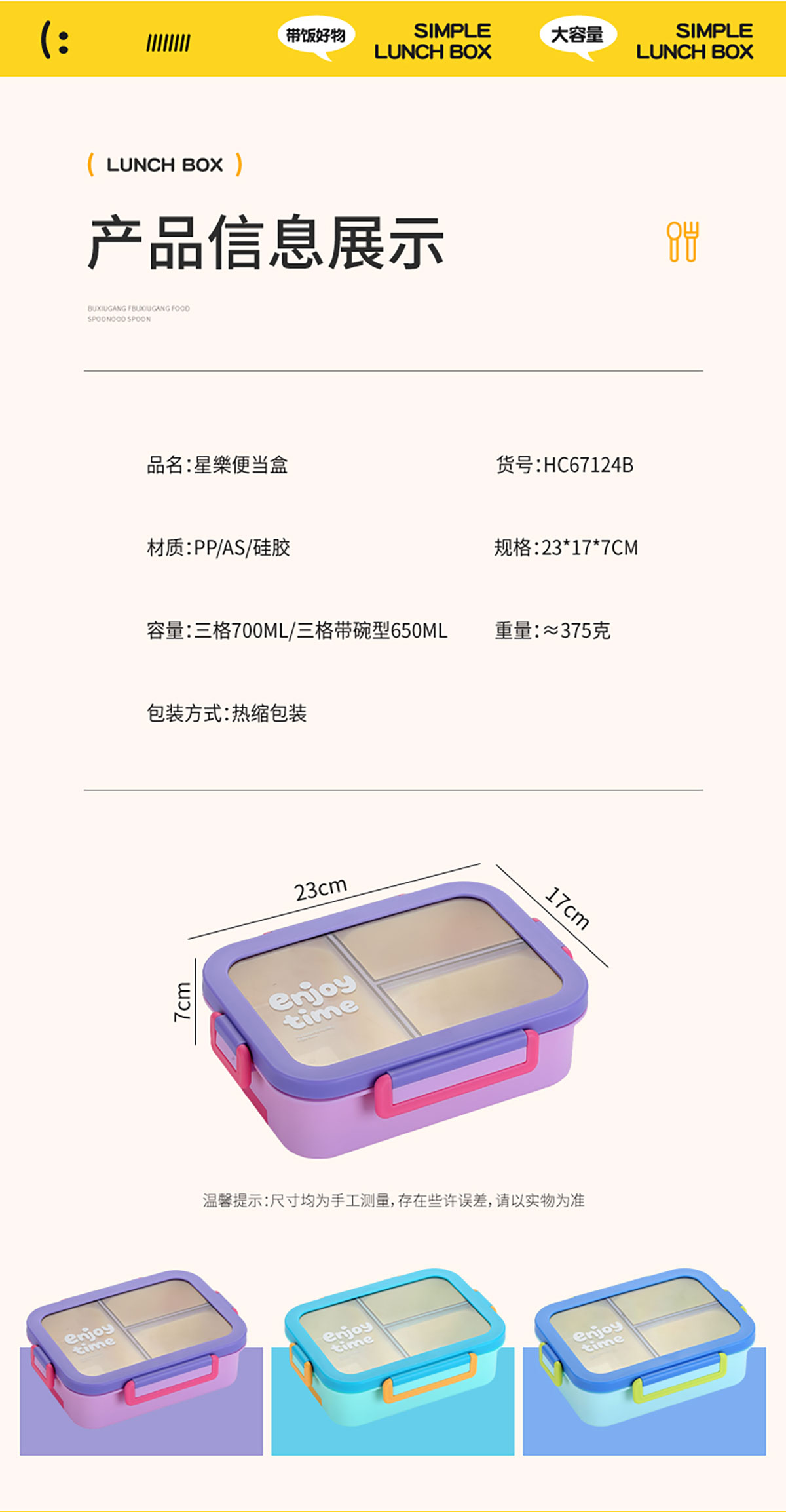 Size: 230*170*70mm(三格700ml/三格帶碗650ml)