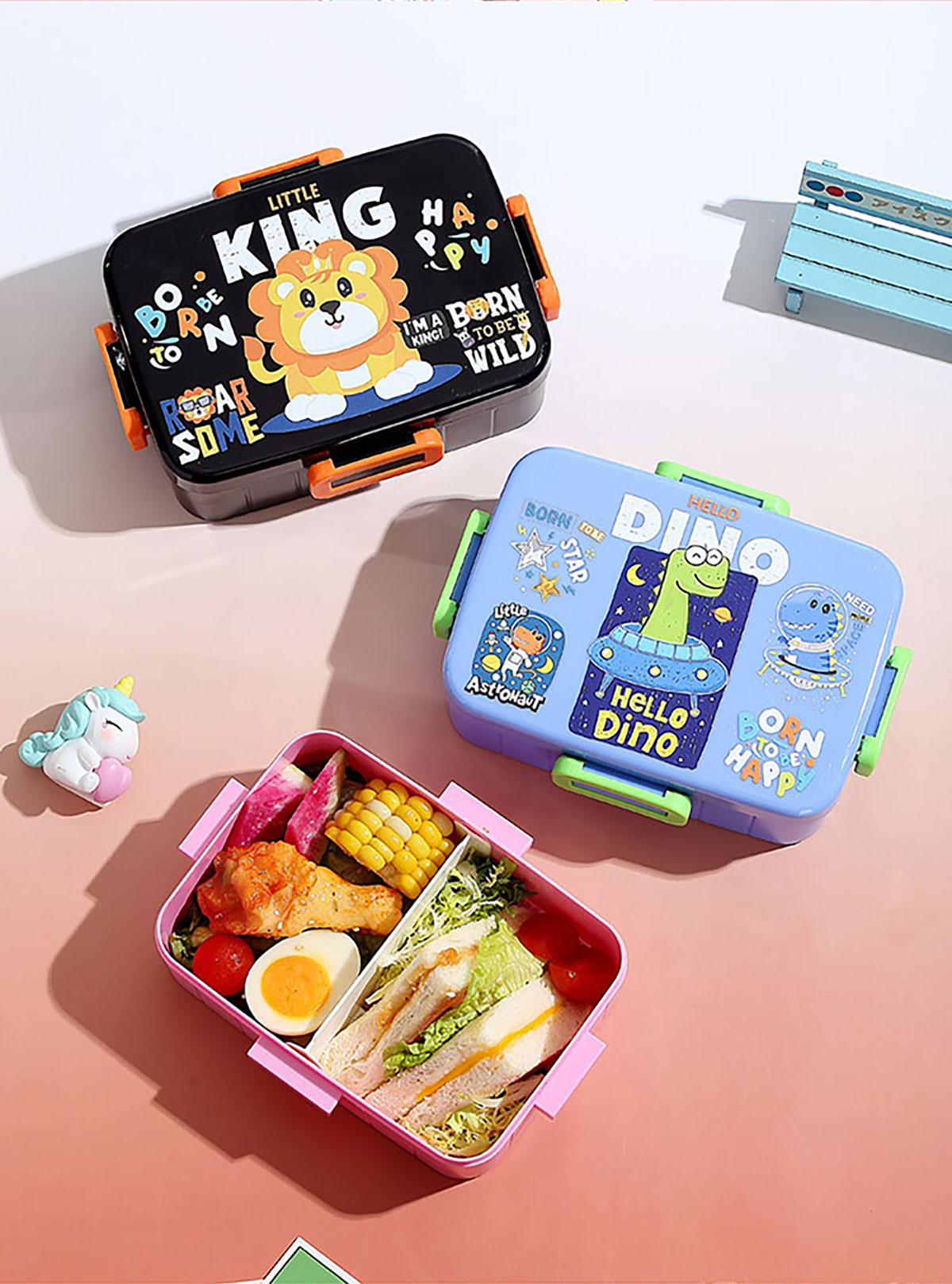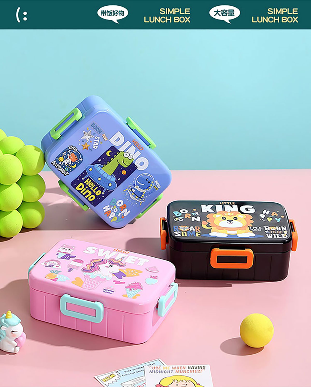 卡通方扣密封餐盒600ml+沙拉碗80ml+PP勺
