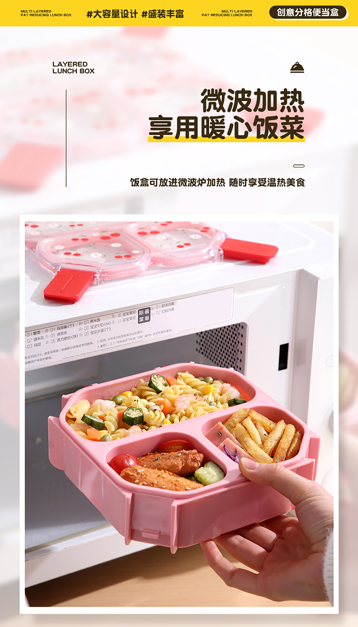 UV手提獨立密封方形塑料二格1.05L/三格980ml餐盒 (配PP折疊叉勺)
